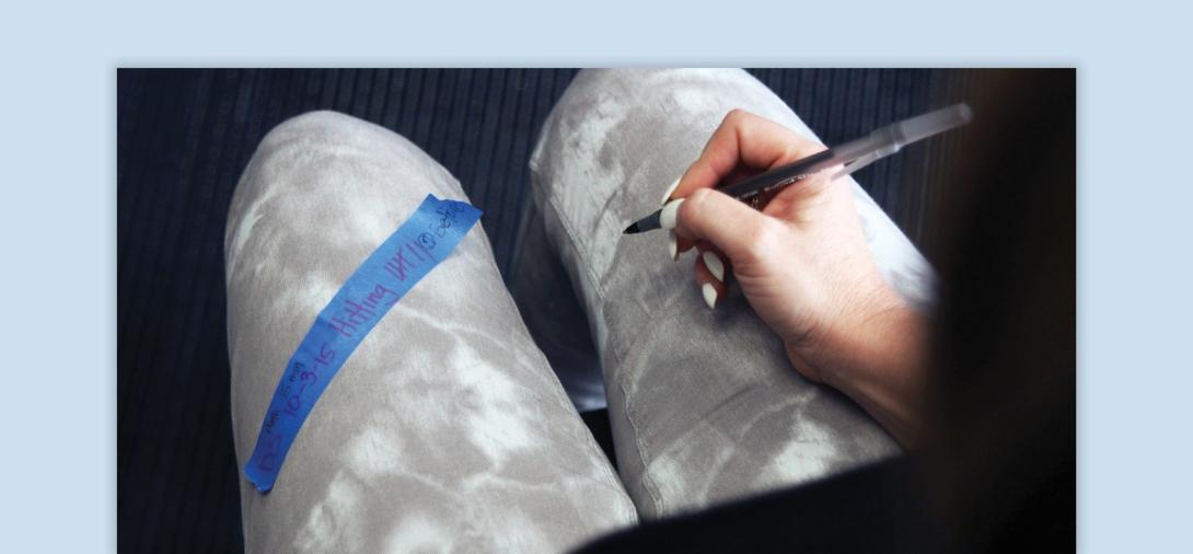 1. Identify a target behavior and place a strip of masking tape on a clipboard or your thigh. For marking, use a pen or a felt tip marker.