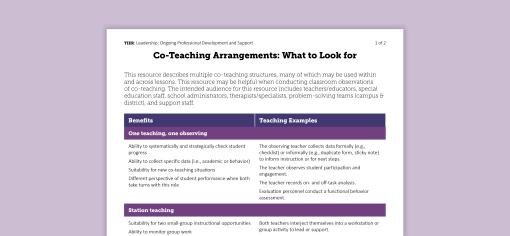 Resources also include quick-learn videos and look-for tools to help educators identify effective co-teaching arrangements and instructional practices in action. The collection emphasizes the importance of working with paraprofessionals as part of a collaborative team and provides guidance for fostering strong partnerships that enhance student outcomes. Whether you're new to co-teaching or refining existing practices, this collection offers actionable insights and professional learning supports to strengthen collaborative instruction across your campus or district.