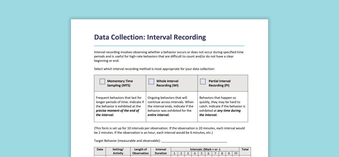 Interval recording involves observing whether a behavior occurs or does not occur during specified time periods and is useful for high-rate behaviors that are difficult to count and/or do not have a clear beginning or end.