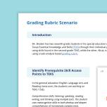 This grading rubric scenario demonstrates how to identify prerequisite skill access points to TEKS, provide instruction that integrates individual accommodations and modifications, pre-plan individual supports, and use task analysis to determine individual student mastery of an assignment or activity