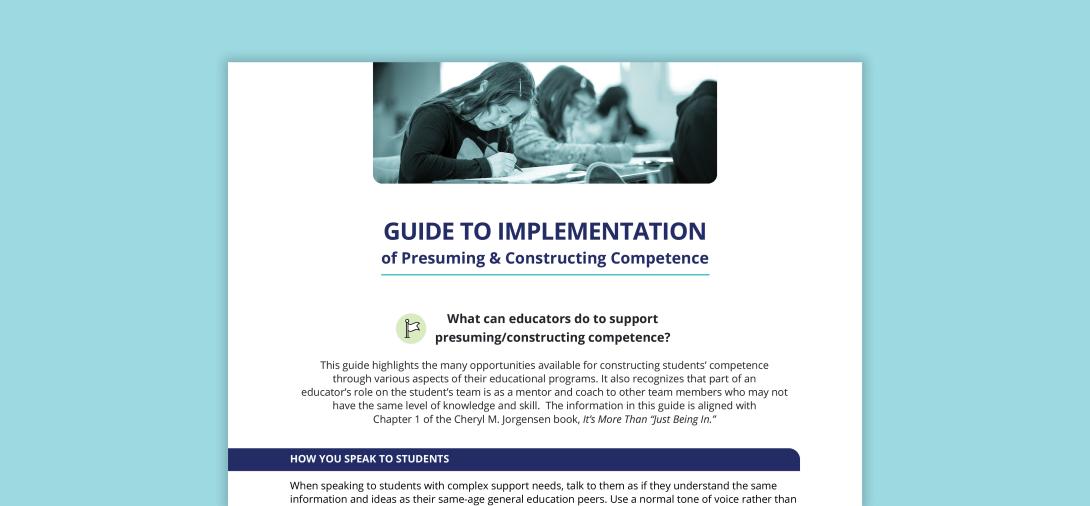 This guide highlights the many opportunities available for constructing students’ competence through various aspects of their educational programs. It also recognizes that part of an educator’s role on the student’s team is as a mentor and coach to other team members who may not have the same level of knowledge and skill.