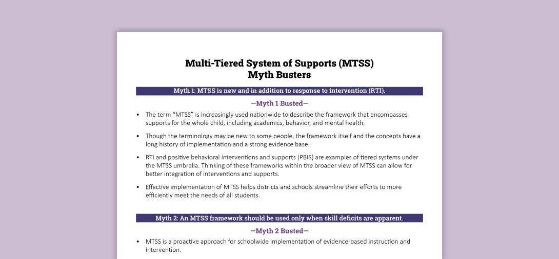 Multi-Tiered System of Supports (MTSS) Myth Busters MTSS ShareBookmark this collection View Document An informational brief that clarifies four common misconceptions about MTSS in relation to terminology, approach, collaboration, and importance