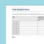 Task analysis is the process of breaking down a task, skill, or process into smaller steps. An educator identifies which steps a student can complete independently, then investigates what supports the student may need to learn the other steps while working towards mastery.