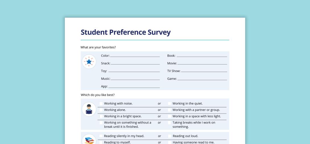 Taking time to inquire, assess, and document a student’s opinions, interests, and preferred activities helps with IEP development. The aim is to know which items or activities are likely to be successful in reinforcing the student’s participation and engagement in learning and communication.