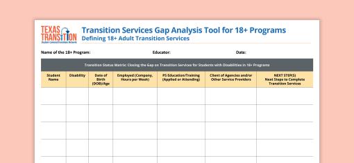 Transition Services Gap Analysis Tool for 18+ Programs: Defining 18+ Adult Transition Services